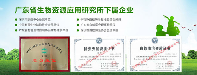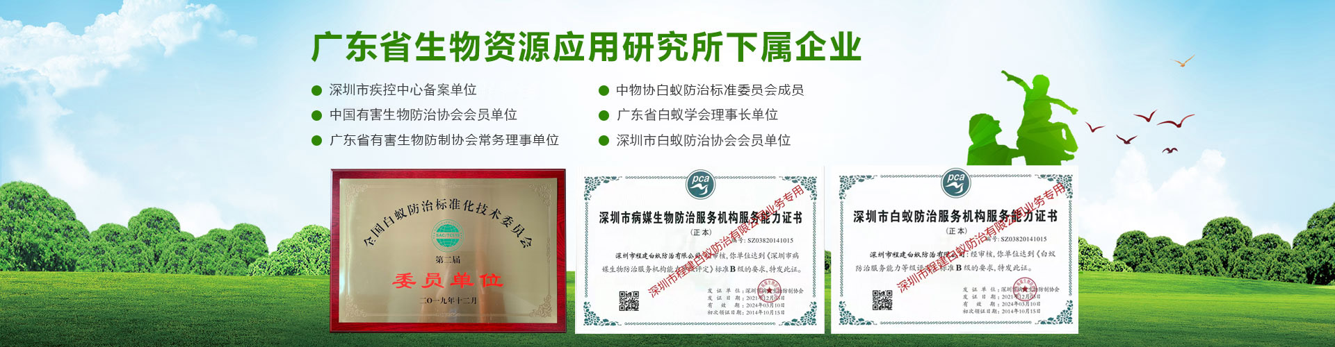 專注于徹底根治、防治結合,售后跟蹤服務,專業(yè)服務工程師有豐富實戰(zhàn)經驗超過十年。持有專業(yè)資格證書認證:“有害生物防制服務機構服務能力證書B級”、“白蟻防治服務機構服務能力證書B級”所有員工持有“深圳市白蟻防治上崗證”和“深圳市除蟲滅鼠上崗證”,雙資格證上崗服務。榮獲過:“優(yōu)質服務示范單位”、“白蟻防治服務信譽AAA級單位”、“深圳市白蟻防治先進單位”、“深圳市十大白蟻防治品牌”、“深圳市殺蟲公司”、“深圳市消殺公司”先進單位等榮譽。